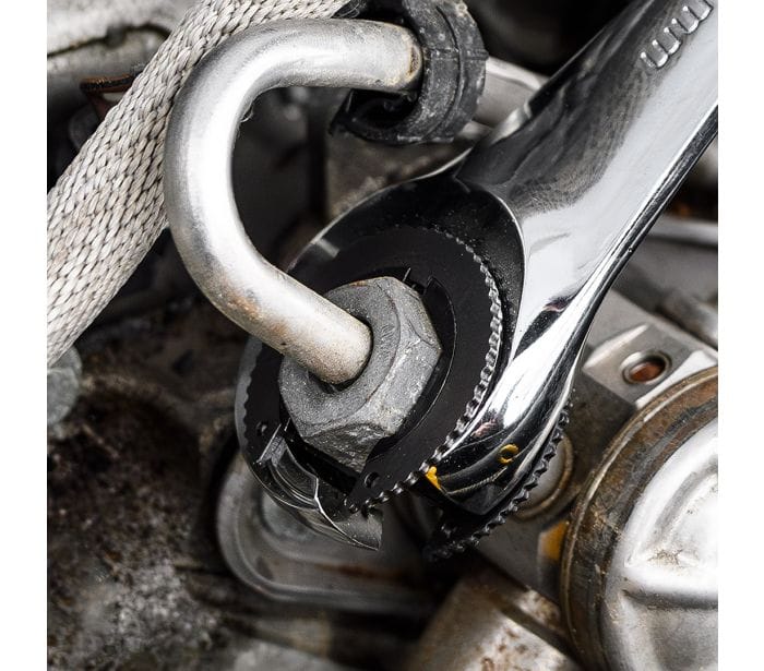 Klucz płasko-oczkowy, rozcięty z grzechotką 72 zęby, 13 mm, stal CrV