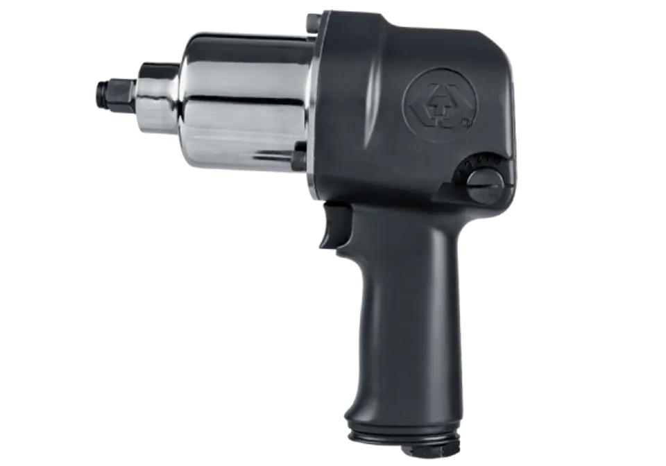 Klucz udarowy 1/2", standardowy trzpień. Obudowa ze stopu aluminium. Niklowo-chromowy trzpień. Zmienna prędkość Rozmiar śruby : M19 Długość całkowita klucza: 194 mm. Wąż powietrza: 3/8" Ciśnienie powietrza: 90 psi (6.2 bara) Prędkość obrotowa do 8000 obrotów na minutę. Zużycie powietrza:125 l/min (4,4 CFM) Maksymalny moment obrotowy 881 NmWaga: 2,8 kg"
