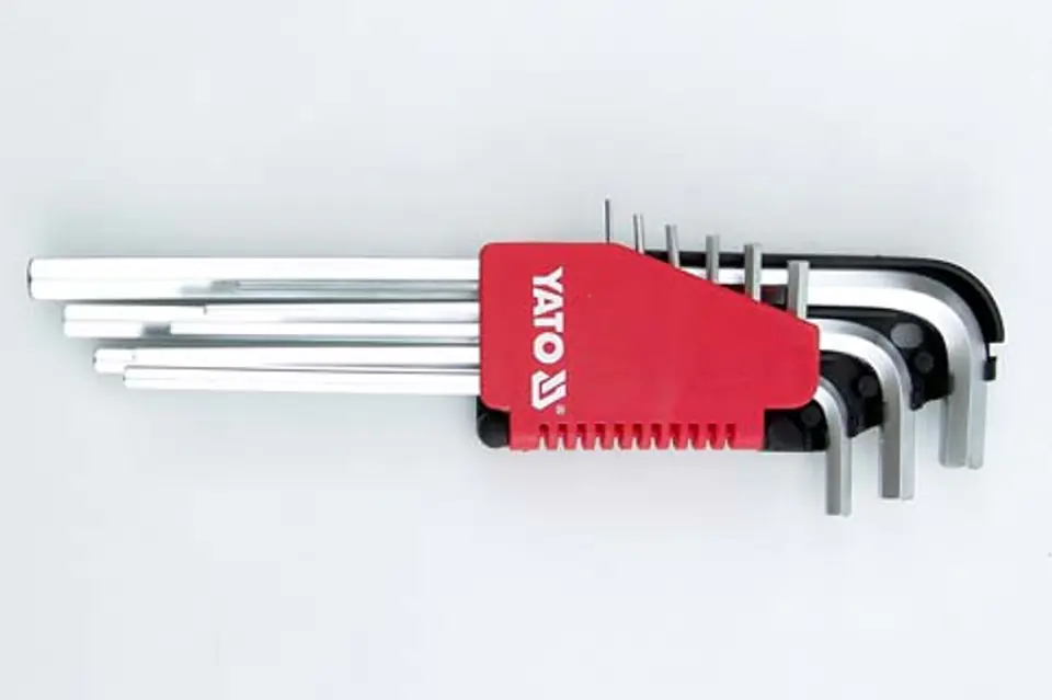 Idealny zestaw kluczy imbusowych z końcówką hex. Zestaw zapakowany w praktyczną i poręczną zawieszkę z tworzywa sztucznego, która ułatwia wyszukanie odpowiedniego rozmiaru klucza. Klucze wykonane z wysokiej jakości stali chromowo wanadowej CrV 6150, charakteryzującej się wytrzymałością oraz sprężystością. Imbusy posidają twardosc 52-55 HRC