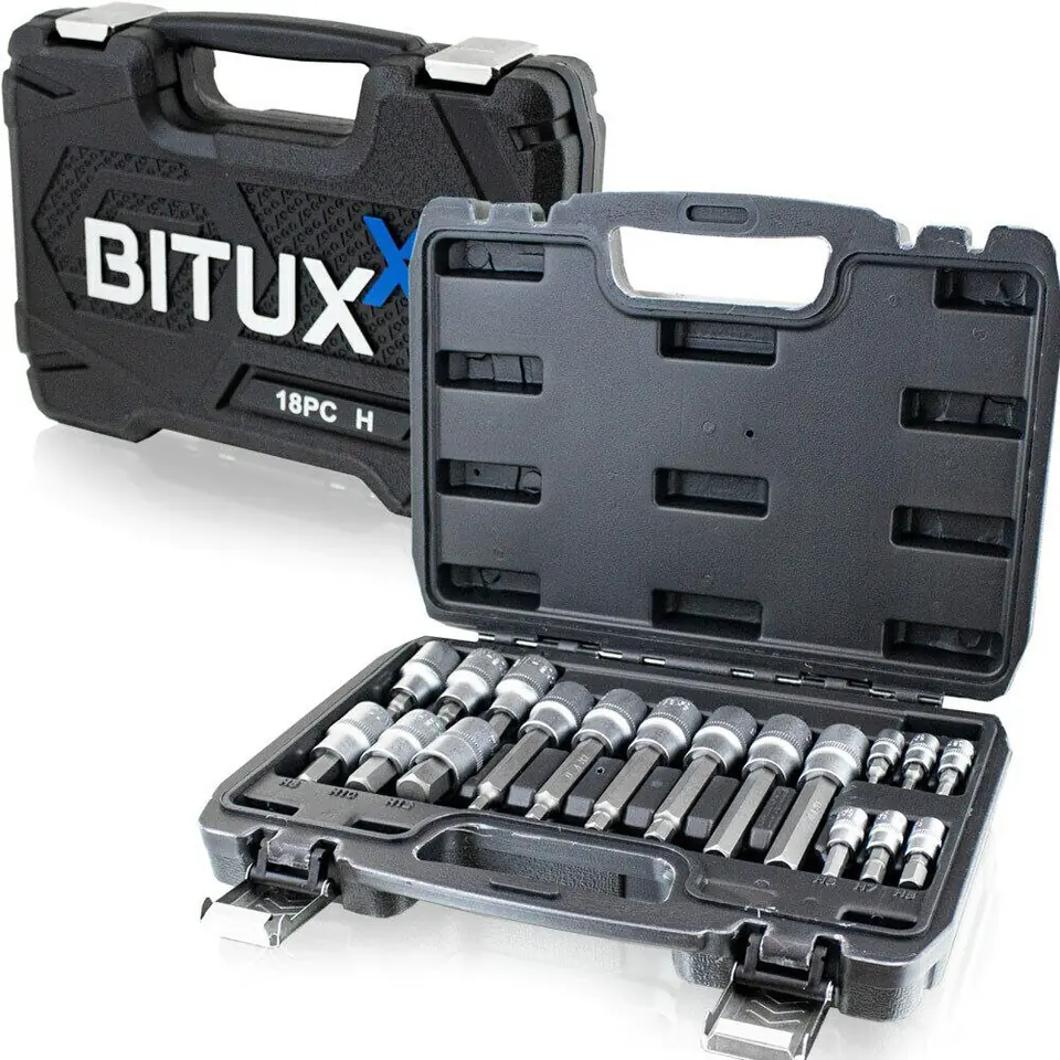 Zestaw składa się z 18 nasadek imbusowych wykonanych z wytrzymałej i trwałej stali chromowo - wanadowej.