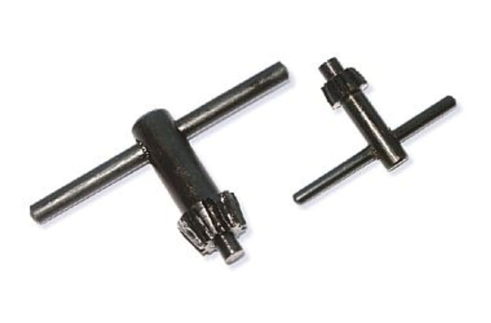 Zestaw dwóch kluczyków do głowicy wiertarki.