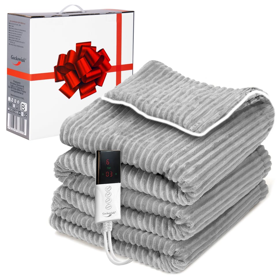 Koc elektryczny 160x180 cm ANGER szary⭐️ Koc wykonany z miękkiego polaru flanelowego⭐️ 6 poziomów temperatury⭐️ Timer od 1 do 12 godzin⭐️ W zestawie koc elektryczny + pilot⭐️ Możliwość prania w pralce⭐️ Zakup od producenta✨Koc elektryczny Anger – Ciepło i relaks na chłodne dni✨Zanurz się w przyjemnym cieple po długim, męczącym dniu. Miękki, delikatny w dotyku polarowy koc Anger szybko się nagrzewa, otulając Cię komfortem i relaksem. Dzięki 6 poziomom regulacji temperatury łatwo dopasujesz stopień ogrzania do własnych potrzeb – od lekkiego ciepła po intensywne rozgrzanie. Bezpieczeństwo użytkowania gwarantuje system automatycznego wyłączania oraz funkcja timera, które pozwalają ustawić czas pracy i zapobiegają przegrzaniu. To praktyczne i energooszczędne rozwiązanie, idealne dla osób, które chcą cieszyć się ciepłem bez podnoszenia kosztów ogrzewania. Koc można bez obaw prać w pralce – wystarczy odłączyć przewód zasilający. Dzięki temu model Anger jest nie tylko wygodny i bezpieczny, ale także wyjątkowo łatwy w utrzymaniu czystości.Cechy:Materiał: polarRegulacja temperatury: 6 poziomówTimer: 1-12 godzinMoc: 150WZasilanie: sieciowe, 220 - 240 V, 60 HzKolor: szaryMożliwość prania: tak, po odłączeniu przewoduCertyfikaty: CE, ROHS Wymiary:Szerokość: 180 cmDługość: 160 cm Informacje dodatkowePrzedstawione kolory należy traktować poglądowo - mogą odbiegać od rzeczywistych ze względu na różne ustawienia monitorów oraz proces obróbki zdjęć. Rzeczywiste wymiary mogą się różnić od podanych wyżej. Tolerancja błędów może wynosić +/- 5%.Marka:GockowiakKod EAN:5902340331149Kolor:szaryDługość: 160 cmSzerokość:180 cmIlość poziomów temperatury:6Moc:150W