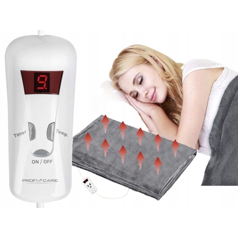 NAJWYŻSZEJ JAKOŚCIKOC ELEKTRYCZNYELEKTRYCZNA KOŁDRARENOMOWANEJ FIRMY PROFICAREMODEL: PC-WZD 3061Rozgrzewający koc elektryczny korzystnie wpływa na krążenie krwi i znacznie polepszy samopoczucie.Idealny na chłodne dni i noce. Szybko się rozgrzewa, równomiernie rozprowadzając ciepło po całej powierzchni.Możesz ustawić go na jeden z 10 poziomów grzania, możesz także zaprogramować automatyczne wyłączanie.Koc Elektryczny – Twój idealny towarzysz na zimowe wieczory!Oferujemy wygodny i przytulny koc elektryczny, który zapewni Ci niezrównany komfort i ciepło w chłodne dni. Wykonany z miękkiego i przyjemnego w dotyku materiału, jest idealny do odpoczynku na kanapie, w łóżku czy podczas wieczornych seansów filmowych.Najważniejsze cechy koca elektrycznego ProfiCare PC-WZD 3061:Koc elektryczny zapewniający długotrwałe i równomiernie rozprowadzone ciepło (miękki, puszysty i przyjemny w dotyku)Regulowany timer do automatycznego wyłączania po 1-9 godzinachZabezpieczenie przed przegrzaniemElektroniczna regulacja temperatury10 kontrolowanych poziomów temperaturyWysokiej jakości jednostka sterująca z wyświetlaczem LED (demontowalnym)Można prać w pralce do 40°CWymiary: ok. 130 x 180 cmWyłącznik bezpieczeństwa220-240 V, 50 Hz, 180 WPo odłączeniu przewodu zasilającego, koc elektryczny można prać w pralce do 40°CProfiCare PC-WZD 3061 to urządzenie, dzięki któremu nie musisz rozkręcać grzejników, gdy zrobi Ci się chłodniej. Nie musisz dogrzewać całego pomieszczenia, gdy masz ochotę ogrzać się i odpocząć.Przykryj się elektrycznym kocem - szybko się rozgrzeje dając ukojenie bolącym stawom i spiętym mięśniom. Od razu poczujesz jego przyjemne, przytulne ciepło, które rozprowadzone jest równomiernie po całej powierzchni koca.Koc ma wielkość 130/180 cm, co umożliwia odpoczynek pod nim dwóm osobom. Jest puszysty i miękki - przyjemny w dotyku nawet dla wrażliwej skóry.Koc świetnie sprawdzi się do zagrzania łóżka dziecka lub starszej osoby, aby mogła bez problemu zasnąć, zdrowym, głębokim snem. Koc jest bezpieczny - posiada wbudowane zabezpieczenie przed przegrzaniem.Do ustawienia temperatury służy intuicyjny sterownik z wyświetlaczem LED, który ma wbudowany timer wyłączający urządzenie po max 9 godzinach. Możesz ustawić jeden z 10 poziomów grzania.KONIEC Z UCZUCIEM CHŁODU W ZIMNE WIECZORY Miłośnikom ciepła i wieczorów w przytulnej atmosferze z kubkiem kawy lub herbaty oraz wiecznym zmarzluchom polecamy elektryczny koc nakładany z pilotem analogowym.To idealne rozwiązanie dla wszystkich, którzy szukają dodatkowego źródła ciepła jesienią i zimą lub w chłodne wiosenne wieczory.Oraz dla tych, którzy szukają prostego sposobu jak zadbać o swoje zdrowie!Właściwości zdrowotne:poprawienie krążenia krwi,łagodzi dolegliwości obolałych stóp,rozluźnia mięsnie i pozytywnie wpływa na samopoczucie,rozgrzewa w chłodne wieczory.10 STOPNI REGULACJI TEMPERATURYKoc dopasowuje się do idealnie do Twoich indywidualnych potrzeb dzięki 10 stopniowej regulacji temperatury:Poziom 1 30°CPoziom 2 32°CPoziom 3 34°CPoziom 4 36°CPoziom 5 38°CPoziom 6 40°CPoziom 7 42°CPoziom 8 44°CPoziom 9 46°CPoziom 10 48°CDlaczego warto kupić koc ProfiCare PC-WZDPrzytulnyKoc szybko się rozgrzeje dając ukojenie bolącym stawom i spiętym mięśniomHigieniczny i bezpiecznyPo odłączeniu przewodu zasilającego, koc elektryczny można prać w pralce do 40°C. Koc posiada również wbudowane zabezpieczenie przed przegrzaniem.Idealny na prezentUrządzenie posiada eleganckie opakowanie, dzięki czemu idealnie sprawdzi się, jako prezent!Zanurz się w błogim cieple i ciesz się chwilami relaksu z naszym kocem elektrycznym! Produkt został odznaczony certyfikatem FOCUS - TEST DEUTSCHLANDS BESTECertyfikat TEST DEUTSCHLANDS BESTE został przyznany na podstawie badań przeprowadzonych przez „Germanys best household electronics”. W ramach testu porównane zostały produkty z ponad 20 000 marek z 274 segmentów rynkowych.Celem wyróżnienia „Focus” jest wskazywanie produktów cieszących się największym uznaniem konsumentów. Certyfikat przyznany jest na podstawie badań niemieckiego rynku i potwierdza wysoką jakość produktów a także świadczy o dużym zaufaniu konsumentów i renomie marki.SLIMTEX