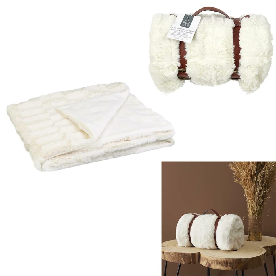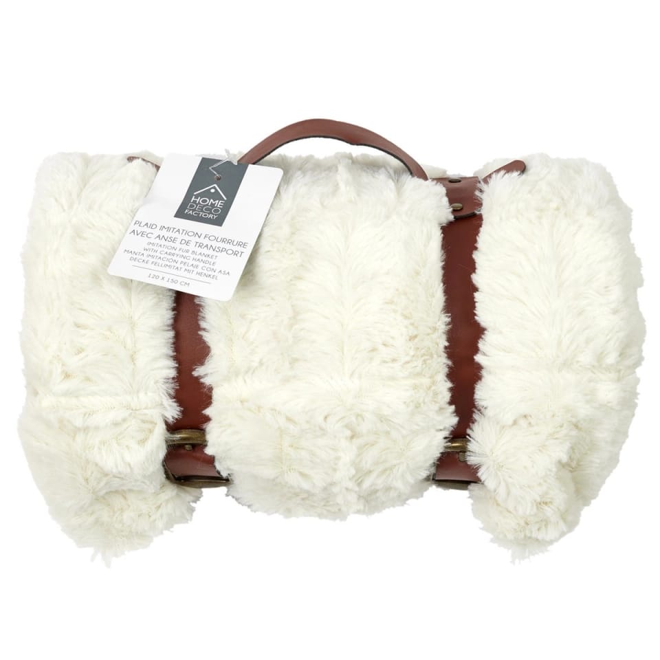 Koc Furry 120x150cm biały z uchwytem