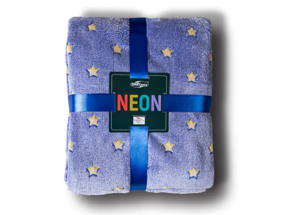 Koc NEON/GWIAZDKI/ciemny błękit + złoto/200x220