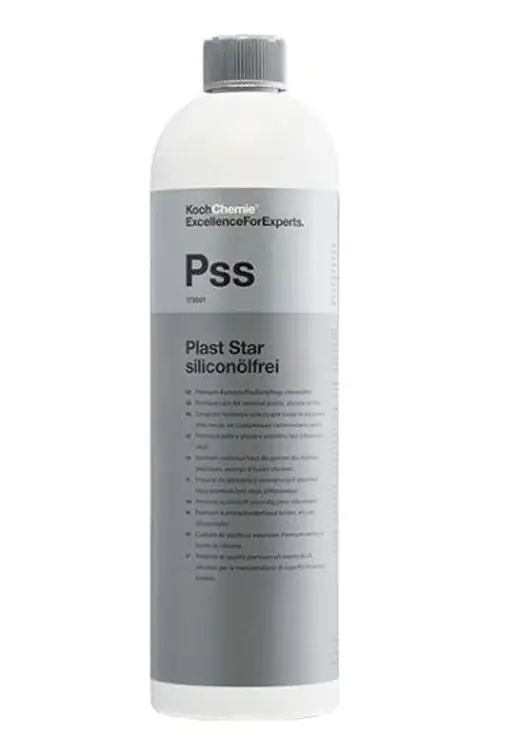 Nie zawierający oleju silikonowego produkt klasy premium do pielęgnacji tworzyw sztucznych. Pielęgnuje i konserwuje przez wiele miesięcy i jest bardzo odporny na promieniowanie UV. Wyczyszczone części odzyskują swój pierwotny, jedwabisto-matowy wygląd, dzięki specjalnemu systemowi składników pielęgnacyjnych (mikro-emulsja), które łączą się na stałe z obrabianym podłożem. Zapobiega przymarzaniu uszczelek drzwiowych. Bardzo długa trwałość, łatwe i szybkie nanoszenie oraz przyjemny zapach sprawiają, że nie zawierający oleju silikonowego Plast Star jest produktem bezkonkurencyjnym. Idealny również do opon i elementów gumowych. Posiada dopuszczenie firmy Daimler.