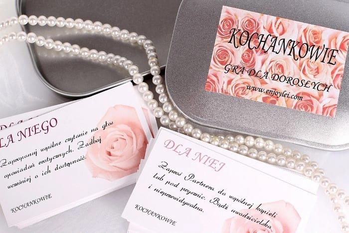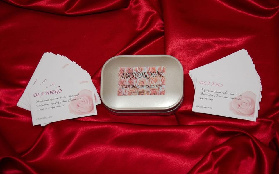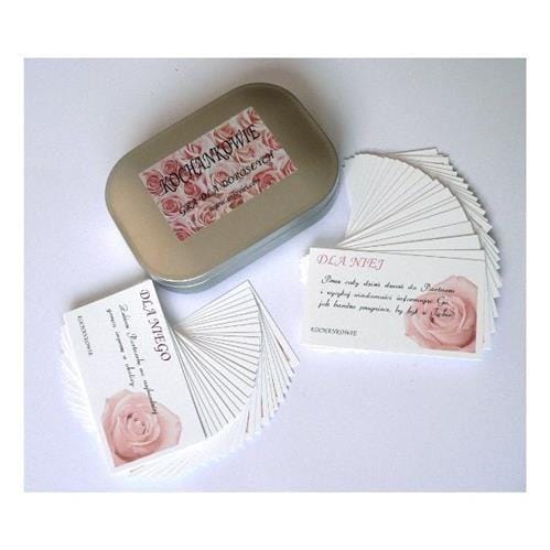 Czy miłość może kwitnąć przez cały rok? Czy płomień namiętności da się podsycać coraz mocniej i mocniej? Oczywiście! Ale czy to łatwe? Na pewno nie! Gdyż jak wszystko co robimy, także i ta sfera życia wymaga czasu, dbałości i troski. Dlatego powstała gra Kochankowie. Pomoże Wam nie zapomnieć o tej sferze życia, jaką jest erotyka. Pokaże Wam jak sprawić przyjemność Partnerowi/Partnerce, jak Ją/Go zaskoczyć, jak upewnić o łączącym Was uczuciu. Podsunie Wam nowe, fantastyczne pomysły! Na czym polega gra? Co tydzień jedno z Was (na zmianę) wylosuje jedną kartę. Partner losuje wśród kart z różą "Dla Niego", Partnerka wśród kart z różą "Dla Niej". Nie pokazując wylosowanej karty Partnerowi/Partnerce, poznają swoje zadanie na najbliższy tydzień i przygotowują się do jego realizacji... Zadania są bardzo zróżnicowane. Stworzone zgodnie z potrzebami i oczekiwaniami mężczyzn i kobiet. Mają na celu wzmacnianie więzi między Kochankami - zarówno uczuciowych jak i erotycznych. Gra składa się: - z 26 kart w z różą dla Niej, - z 26 kart w z różą dla Niego, - instrukcji, - ekskluzywnego metalowego pudełka. Dla kogo jest gra Kochankowie? Kochankowie to gra tylko dla tych par, które planują wspólne bycie razem przez dłuższy czas. W końcu jest to gra na cały rok! Z jakiej okazji warto kupić "Kochanków"? Kochankowie to doskonały prezent dla partnera/partnerki, właściwie z dowolnego powodu: na Boże Narodzenie, Mikołaja, urodziny, Walentynki. Albo bez okazji! Kochankowie są również idealni jako prezent dla przyjaciół: na urodziny, ślub, rocznicę, na wieczór panieński lub kawalerski! To kolejny z naszej serii: prezent z klasą!!