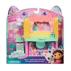 Niesamowite przygody czekają na Ciebie w Magicznej Kuchni Łakotka! Ten 10-elementowy zestaw ożywia magię filmu Koci Domek Gabi i zawiera figurkę Łakotka oraz łącznie 8 mebli i akcesoriów do domku dla lalek, co pozwala na przeżywanie fantastycznych przygód z tymi zabawkami edukacyjnymi. Kuchnię można przymocować do domku dla lalek i przekształcić w dwupiętrowy pokój, rozbudowując domek i wzbogacając go o funkcję-niespodziankę. Umieść Łakotka na piedestale i pociągnij pomieszczenie w dół, aby teleportować go do jego filmowej krainy słodyczy. Rozpakuj Kocią Przesyłkę, tak jak robi to Gabi w serialu, aby znaleźć akcesorium-niespodziankę, a następnie zeskanuj kod QR, aby odblokować niespodziankę w aplikacji Koci Domek Gabi. Ten zestaw wspaniale inspiruje do zabawy i zachęca do kociastycznych odkryć dzięki uroczym zabawkom dla dzieci z serii Koci Domek Gabi. Akcesoria Kociego Domku Gabi to idealne prezenty dla dzieci, pozwalające przeżyć niezapomniane zdarzenia znane z filmu o Gabi, a także stworzyć nowe przygody w Kocim Domku, wykorzystując zabawki takie jak akcesoria i meble do domku dla lalek, kociastyczni przyjaciele i fantastyczne syrenkowe zabawki, zapewniające niekończące się godziny wspaniałych kocich przygód (każda sprzedawana osobno).