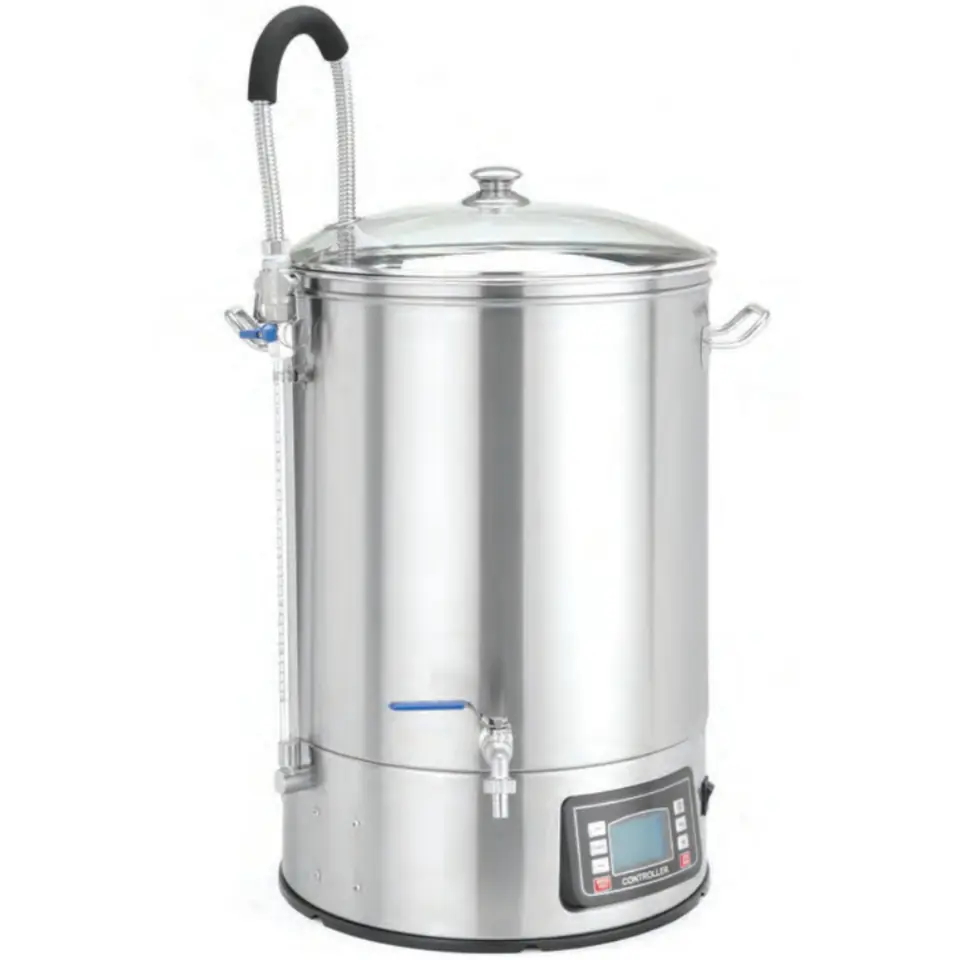 Kod producenta: 289952Kocioł warzelny elektryczny umożliwia produkcję piwa ze słodu w warunkach domowych. Nowoczesna elektronika sprawia, że z jego obsługą poradzą sobie zarówno nowicjusze jak i doświadczeni piwowarzy. Tryb ręczny dla specjalistów warzących piwo wg własnej fantazji. Tryb automatyczny - pamięć urządzenia pozwala zapisać 9 receptur, każdą do 9 kroków.Cechy produktu: