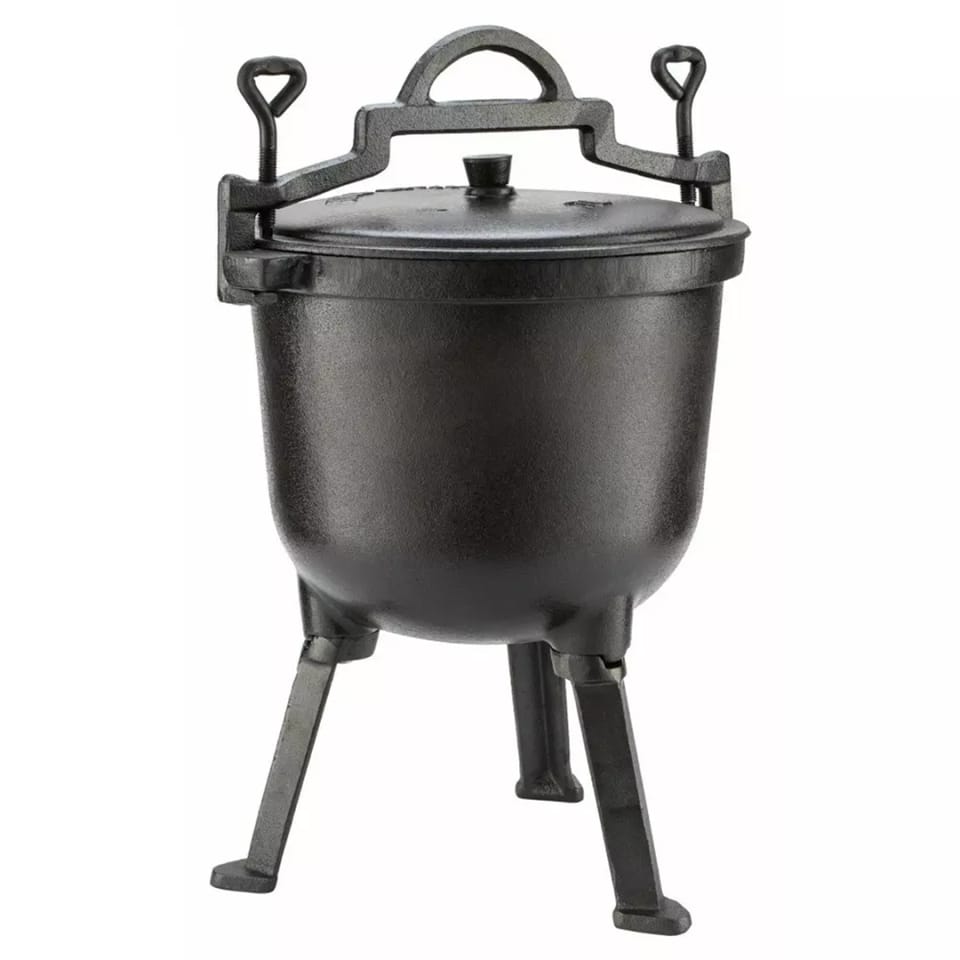 Kociołek żeliwny myśliwski emaliowany o pojemności 10l wykonany z żeliwa szarego, oksydowany z zewnątrz oraz emaliowany wewnątrz. W tej wersji wnętrze kociołka oraz spód pokrywy pokryte emalią żaroodporną która zapobiega przywieraniu potraw. Kociołki żeliwne stanowią doskonałą alternatywę dla grilla i zyskują sobie coraz większą popularność w całej Europie. Przyrządzanie pysznych dań jedno-garnkowych pod gołym niebem sprawia wiele radości i jest też doskonałym pretekstem do spotkań z rodziną i przyjaciółmi.