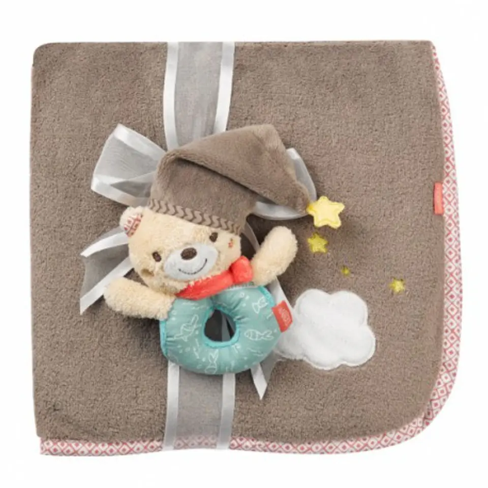 Kocyk z maskotką, Miś Bruno, z Kolekcji: Bruno Delikatny w dotyku, ozdobiony maskotką misiem, będzie pełnił rolę najlepszego przyjaciela, pocieszyciela, bratniej duszy i opiekuna. Można go używać jako przytulankę, dywanik lub okrycie. Twoje dziecko będzie czuć się komfortowo i bezpiecznie. Wykonany z najwyższej jakości materiału daje się złożyć w zgrabny pakunek, dzięki temu może być doskonałym towarzyszem w domu lub w podróży. Delikatny w dotyku. Miękki, przewiewny i trwały. Na czas podróży można zrolować w zgrabny pakunek. Można prać. Rozmiar: Kocyk: 100 x 75 cm, Maskotka: 13 cm Wszystkie zabawki niemieckiej marki FEHN są bezpieczne dla dzieci od 0 lat. Wykonane są z najlepszej jakości materiałów. Spełniają normy EN71, CE, badane w instytutach ""Stiftung Warentest"" lub ""Ökotest”. 60348