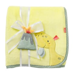 Kocyk z maskotką, Wulkan, z kolekcji: Wesoły Dinozaur Kocyk delikatny w dotyku, miękki, przewiewny i trwały, ozdobiony aplikacją Dinozaura z dodatkową maskotką - Wulkanem, będzie pełnił rolę najlepszego przyjaciela, pocieszyciela, bratniej duszy i opiekuna. Można go używać do owinięcia w wózku lub foteliku dziecięcym, jako podkładka do raczkowania, wkładka do kojca lub jako okrycie w łóżeczku. Twoje dziecko będzie czuć się komfortowo i bezpiecznie. Wykonany z najwyższej jakości materiału daje się złożyć w zgrabny pakunek, dzięki temu może być doskonałym towarzyszem w domu lub w podróży. Charakterystyka: Delikatny w dotyku. Miękki, przewiewny i trwały. Posiada śliczną maskotkę - Dymiący wulkan. Na czas podróży można zrolować w zgrabny pakunek. Specyfikacja: Materiał wierzchni: plusz (100% poliester), Oprawa: tkanina drukowana (100% poliester), Wykończenie: sztruks (95% poliester, 5% elastan), muślin (100% bawełna). Można prać w 30C. Rozmiar: Kocyk - 100 cm x 70 cm x 0,5 cm, Maskotka - 11 cm. Wymiary opakowania: 36 cm x 25 cm x 7,5 cm. Wszystkie produkty niemieckiej marki FEHN są bezpieczne dla dzieci od 0 lat. Wykonane są z najlepszej jakości materiałów. Spełniają normy EN71, CE, testowane pod kątem bezpieczeństwa przez niezależne instytuty badawcze. FE51247