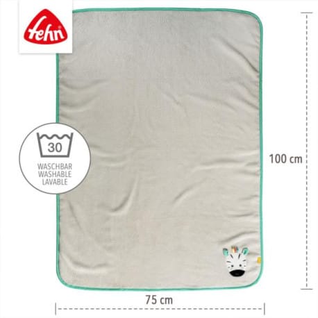 Kocyk Zebra z gryzakiem z kolekcji: DoBabyDooDelikatny w dotyku, miękki, przewiewny i trwały, ozdobiony aplikacją Zebry z dodatkowym gryzakiem, będzie pełnił rolę najlepszego przyjaciela, pocieszyciela, bratniej duszy i opiekuna. Można go używać do owinięcia w wózku lub foteliku dziecięcym, jako podkładka do raczkowania, wkładka do kojca lub jako okrycie w łóżeczku. Twoje dziecko będzie czuć się komfortowo i bezpiecznie. Wykonany z najwyższej jakości materiału daje się złożyć w zgrabny pakunek, dzięki temu może być doskonałym towarzyszem w domu lub w podróży.Uroczy kocyk z aplikacją Zebry i gryzakiem.Delikatny w dotyku. Miękki, przewiewny i trwały.Dołączony jest mały, miękki gryzak w neonowym kolorze, który zachęca do chwytania i odkrywania oraz pomaga przy ząbkowaniu.Na czas podróży można zrolować w zgrabny pakunek.Materiał wierzchni: plusz (100% poliester) / lamówka: tkanina zadrukowana (100% poliester) / aplikacja: welur (100% poliester), tkanina zadrukowana (100% poliester).Można prać w 30deg;C.Rozmiar: Kocyk - 100 cm x 75 cm x 0,5 cm, Gryzak - 8 cm x 8 cm.Wymiary opakowania: 30 cm x 30 cm x 6,5 cm.Wszystkie produkty niemieckiej marki FEHN są bezpieczne dla dzieci od 0 lat.Wykonane są z najlepszej jakości materiałów.Spełniają normy EN71, CE, testowane pod kątem bezpieczeństwa przez niezależne instytuty badawcze.Fehn- niemiecka firma produkująca z powodzeniem od ponad 70 lat, zabawki i akcesoria dziecięce, spełniające najwyższe standardy jakości. Wszystkie materiały użyte w zabawkach, są pochodzenia naturalnego. Fehn zadbał również o piękne, ekologiczne opakowania. Wszystkie produkty tej marki są bezpieczne dla dzieci już od pierwszych dni życia.Nowa kolekcja DoBabyDoo jest w całości poświęcona „aktywności#8221;, ponieważ koncentruje się na zabawkach o wielu różnych funkcjach i związanej z tym promocji wczesnego rozwoju dziecka. Nauka i zabawa to motto tej kolekcji, która łączy rozrywkę i zabawki z tym, w czym dzieci są najlepsze: byciem ciekawym i uczeniem się.