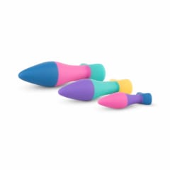 Każdy z trzech modeli został wykonany z wyjątkowo gładkiego, bezpiecznego dla skory silikonu, ktory charakteryzuje się elastycznością i łatwością utrzymania w czystości. Stożkowy kształt oraz płaska podstawa gwarantują komfort i stabilność podczas użytkowania. Zestaw zawiera akcesoria w trzech rozmiarach, dzięki czemu można dostosować wybor do własnych preferencji.