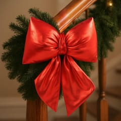 Klasyczna czerwień i połyskujący materiał tworzy ponadczasowy, bożonarodzeniowy styl. Kokarda pasuje zarówno do tradycyjnych, jak i nowoczesnych aranżacji świątecznych.