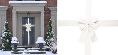 KOKARDA NA DRZWI 33x42CM WSTĄŻKA BIAŁA zmieni zwykłe wejście w elegancką ozdobę, która zachwyci domowników i gości.