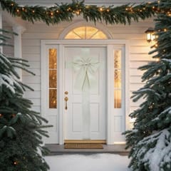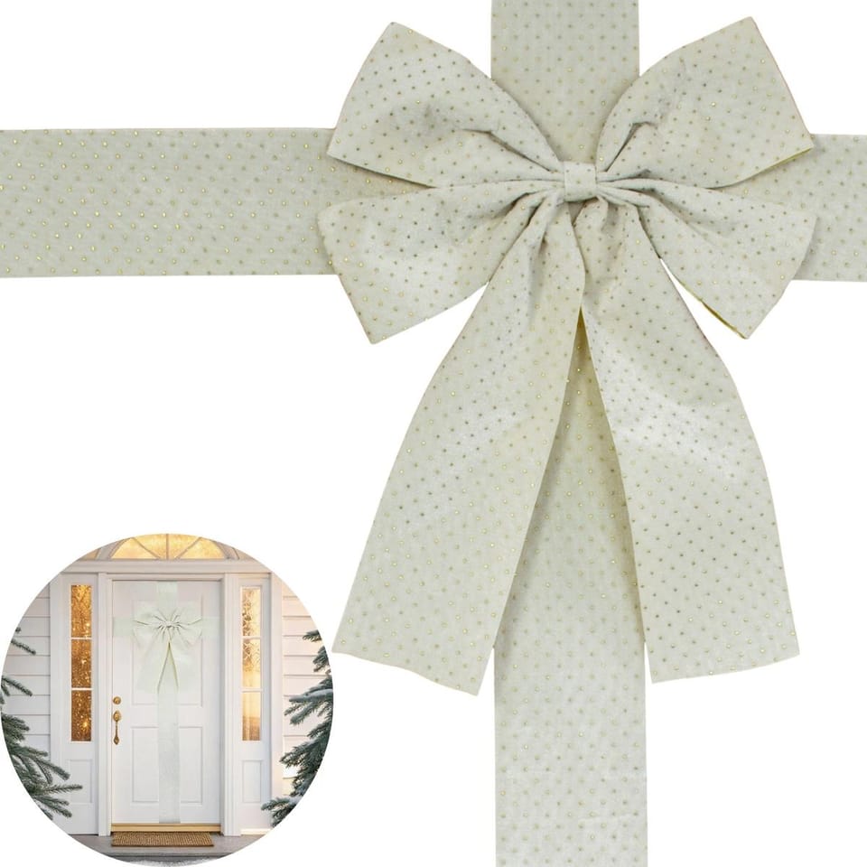 Duzy wymiar kokardy 33x42 cm zwraca uwagę i sprawia, że staje się ona centralnym punktem dekoracji drzwi. Dzięki odpowiedniemu wymiarowi prezentuje się elegancko i nie ginie w całości aranżacji świątecznej.