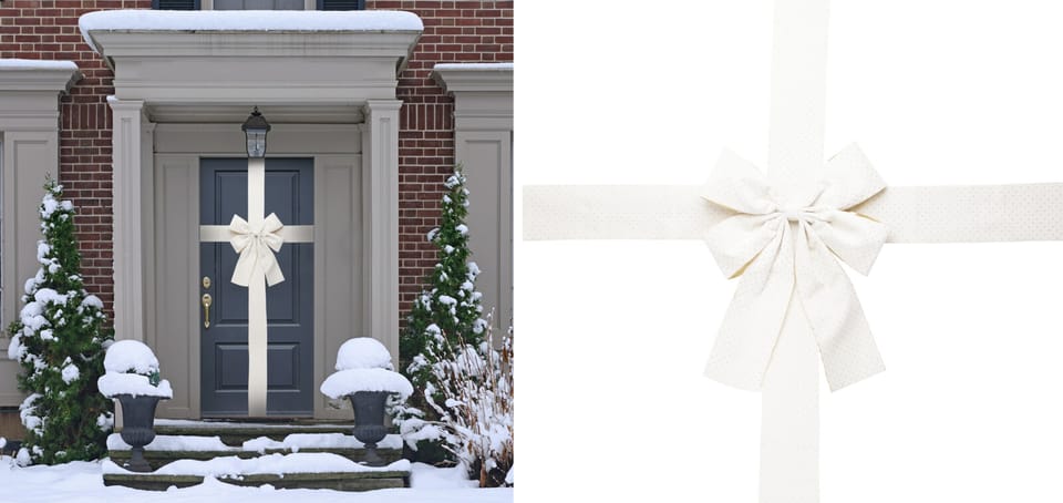 Długa wstążka pozwala łatwo przewiązać całe drzwi w pionie i poziomie, tworząc efekt zapakowanego prezentu. Jej długość jest dopasowana do większości standardowych drzwi, dlatego montaż jest szybki i prosty.