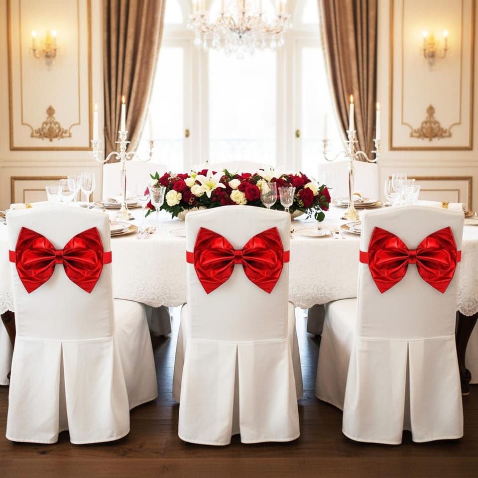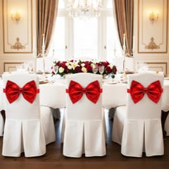 Dodaj swoim krzesłom blasku i elegancji! KOKARDA NA KRZESŁO 50X32CM CZERWONA sprawi, że każda uroczystość zyska wyjątkowy charakter.