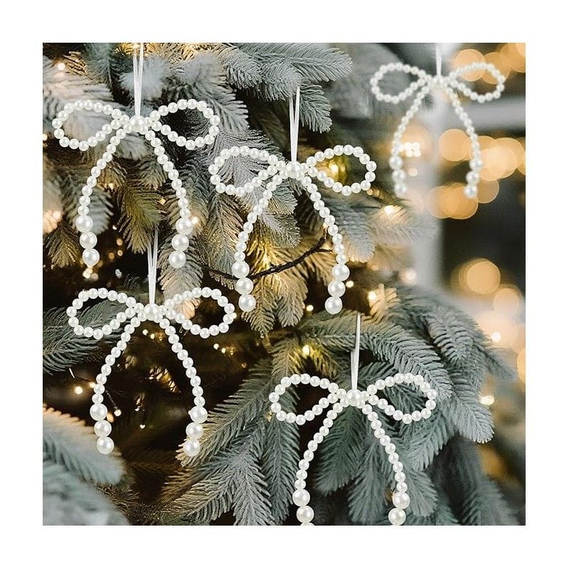 Kokardki perełkowe na choinkę, ozdoby świąteczne 10 x 12 cm, zestaw 6 szt. - WOZ53