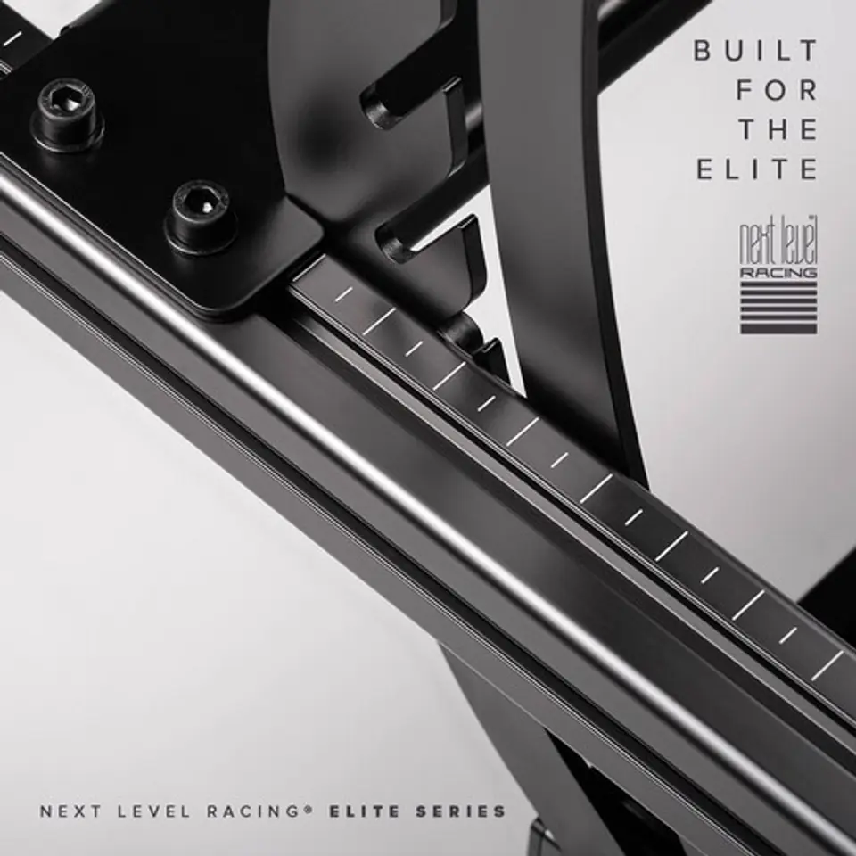 Przesuwane nakładki na pedały zintegrowane z kokpitem symulatora profilu Next Level Racing F-GT Elite Formula i GT Aluminium Profile Edycja nakładki na koła (NLR-E001) zostały zaprojektowane tak, aby zminimalizować odległość między regulacjami, umożliwiając użytkownikom włączenie ich unikalnego stylu jazdy do swoich doświadczenie symulatora wyścigów. Obie płytki pedałów mają konstrukcję ze stali węglowej o grubości 5 mm z podwójnie precyzyjnymi fałdami, co zwiększa sztywność profilu, zapewniając solidniejszą i trwalszą konstrukcję, a jednocześnie pomaga w uproszczeniu kompatybilności z zewnętrznymi produktami pedałów z stale rosnącego rynku pedałów. Laserowo wytrawione oznaczenia znajdują się na aluminiowym profilu, co ułatwia dokonywanie dokładnych regulacji, niezależnie od tego, czy chodzi o przesunięcie oparcia fotela o cal, aby uzyskać lepszy widok, czy zbliżenie się do ekranu w celu lepszego zanurzenia się.