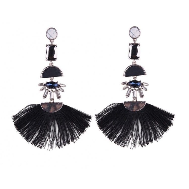 Kolczyki chwosty to najnowszy trend. Pięknie wyglądają. Pasują zarówno do eleganckich sukienek jak i żakietów i marynarek. Połączenie kryształu z frędzlem tworzy efektowne połączenie.Inspirowane modą z całego świata!Wymiary:Długość: 6 cm Szerokość: 1 cm Materiał : metal nieszlachetny bez niklu i chromu