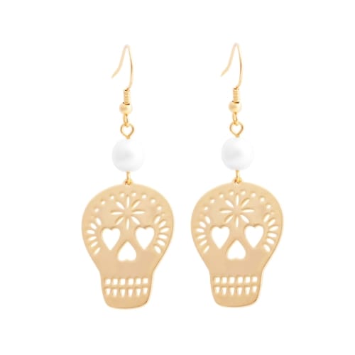 Kolczyki czaszki z perełkami. Długość kolczyka 5,5cm, szerokość 2cm. Kolczyki pozłacane.