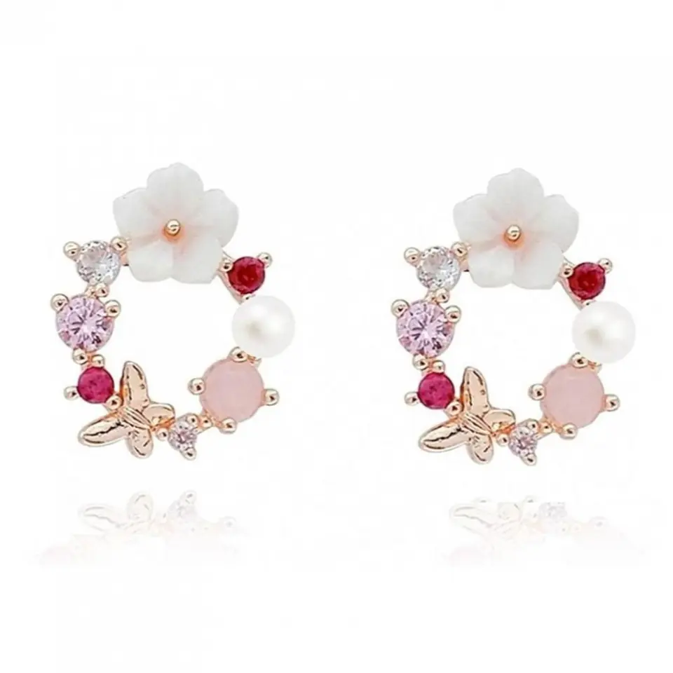 Kolczyki delikatne wianuszki kwiatki kryształki 1,2x1,4cm K1541