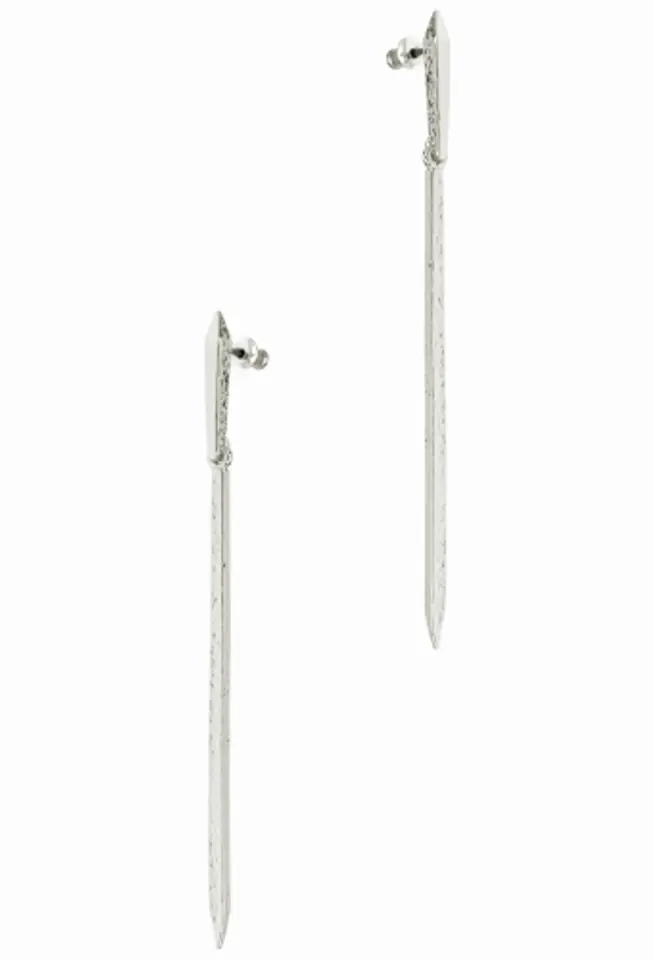 Długie kolczyki wysmuklające szyję. Długość 8,5cm, szerokość 0,2cm. Kolczyki posrebrzane.