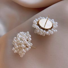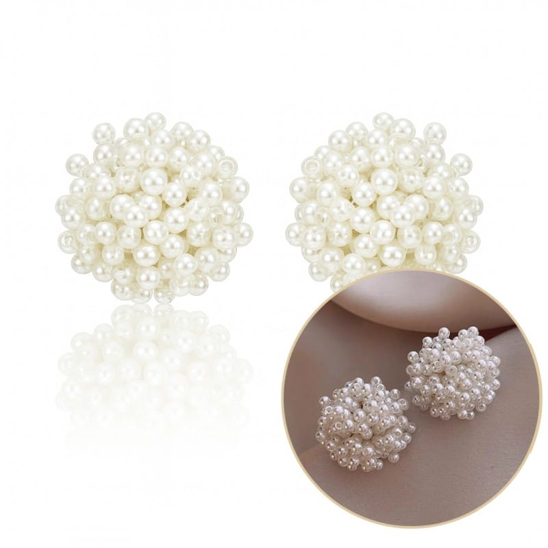 Kolczyki efektowne sztyft, okrągłe, koraliki białe, perełki 2,6cm K1714