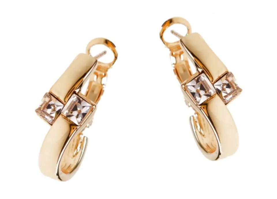 Kolczyki dodadzą klasy każdej kobiecie. Cyrkonie przepięknie lśnią, a Ty jesteś zawsze zauważona. Długość 2cm, szerokość 1,7 cm, grubość 0,9cm. Kolczyki pozłacane.