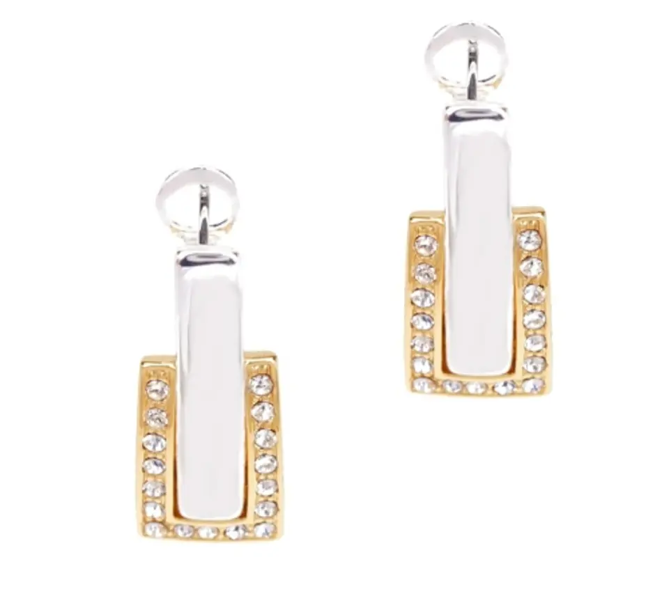 Przepiękne kolczyki w dwóch kolorach - srebrnym i złotym. Kolczyki z kryształkami Swarovskiego. Długość 2,5cm, szerokość 1,1cm, grubość 0,3cm.