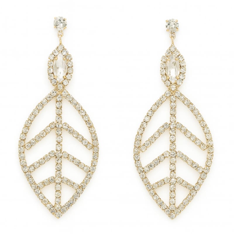 Kolczyki kryształowe, ozdobne, wiszące złote K1503Z