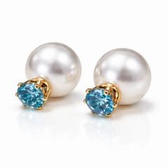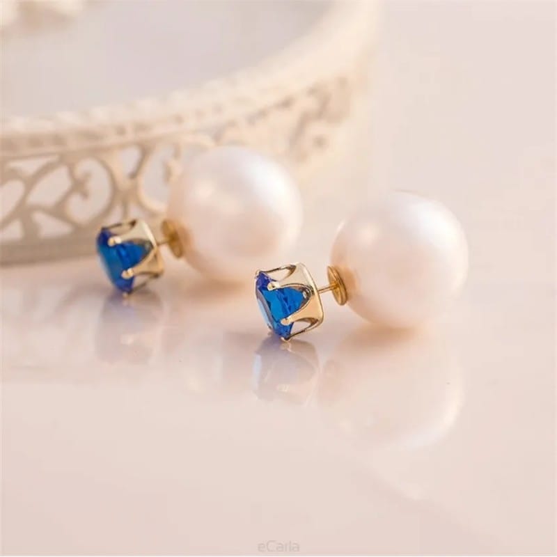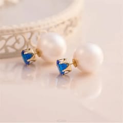 Kolczyki Kule Triball Perłowe z niebieskim Kryształem K70N