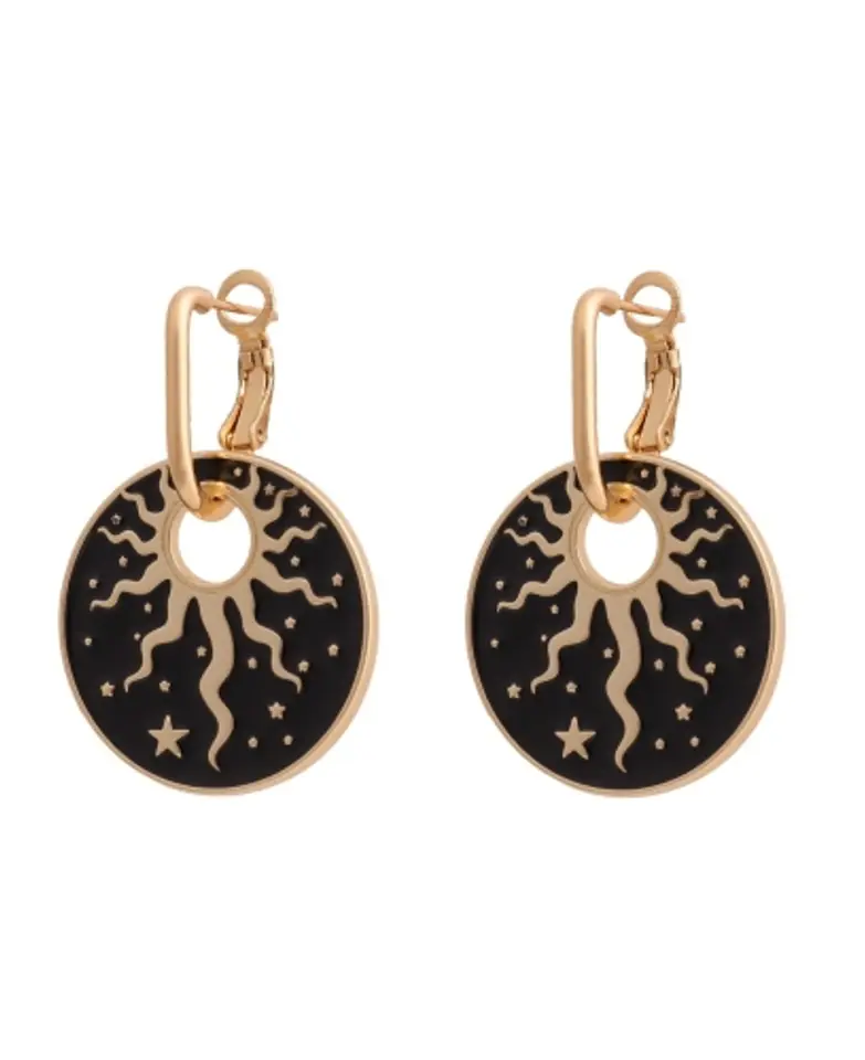 Kolczyki niebo nocą z onyksów z czarną emalią