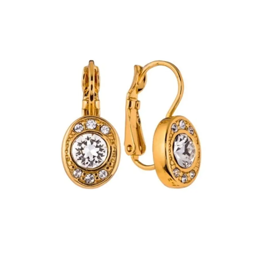Kolczyki z kryształkami Swarovskiego dopełnią każdą stylizację. Długość 2,2cm, szerokość 0,9cm. Kolczyki pozłacane.
