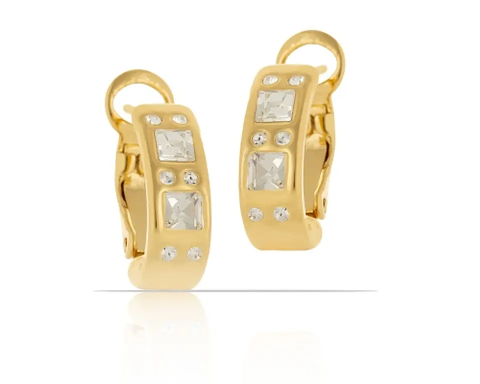 Klasyczne kolczyki na angielskim zapięciu, zdobione kryształkami Preciosa. Długość kolczyka wynosi 1,7cm. Kolczyki pozłacane.