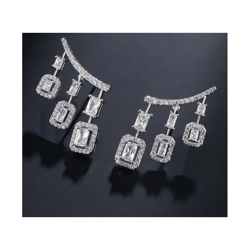 Kolekcja biżuterii ślubnejNowe, modne wzory wykonywane ręcznie ze stopów jubilerskichStarannie dobrane materiały sprawiają, że biżuteria nie zmienia koloru i jest hipoalergiczna, a także jest wytrzymała dzięki odpowiedniej twardości stopówZadbaliśmy również o to aby do jej wykonania użyte zostały selekcjonowane cyrkonie dzięki czemu biżuteria ta charakteryzuje się niezwykłym blaskiemWszystkie modele będą na pewno pięknym dodatkiem do sukien ślubnych Państwa klientów Kolczyki z kryształkami Wymiary:Podane na zdjęciu