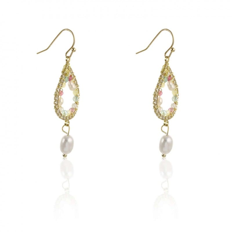 Kolczyki stal chirurgiczna złote wiszące z perłą sztyft KST1814