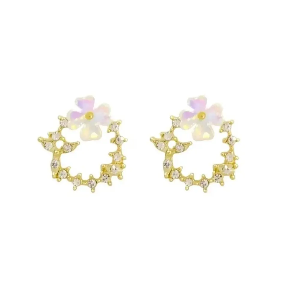 Kolczyki sztyfty wianuszki cyrkonie kwiatek K1672