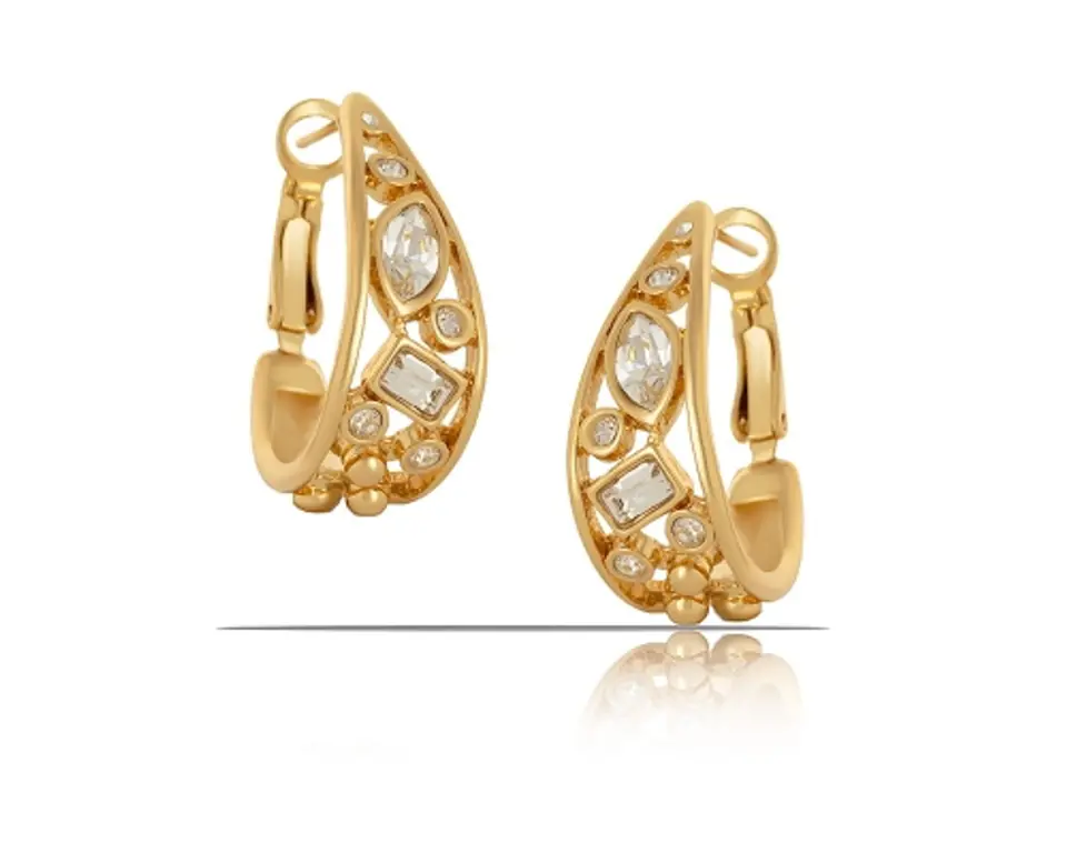 Pozłacane kolczyki w stylu barokowym z kryształkami Preciosa. Długość kolczyka wynosi 2,7 cm.