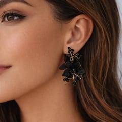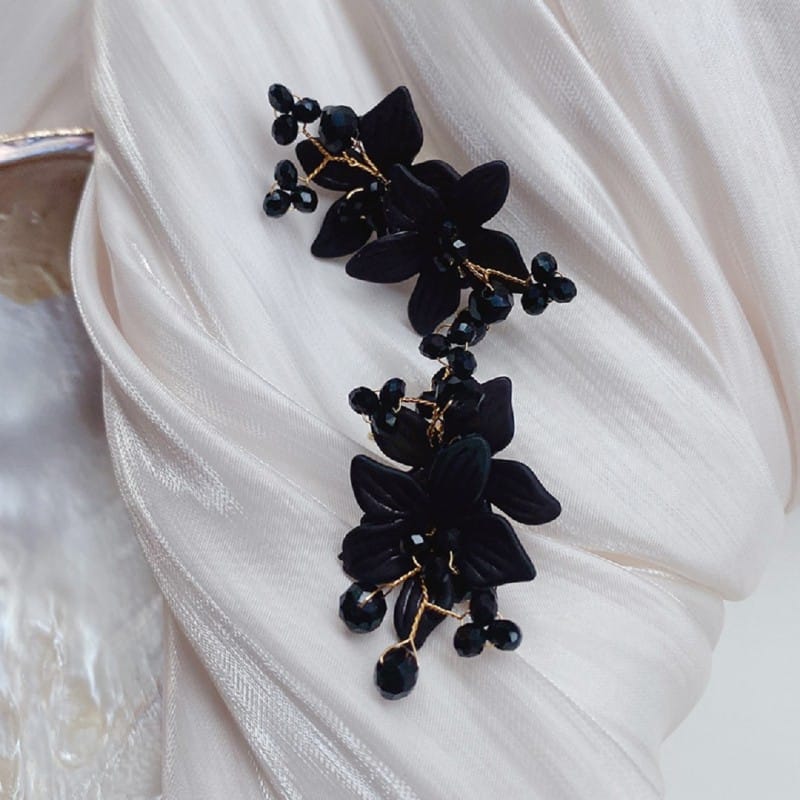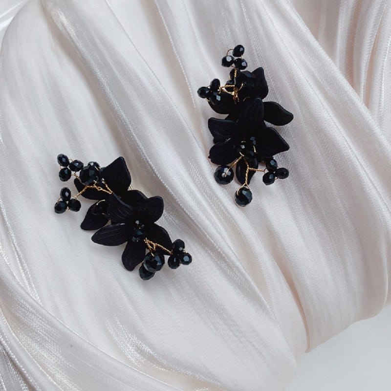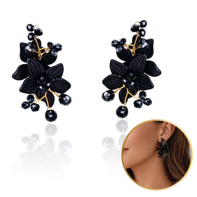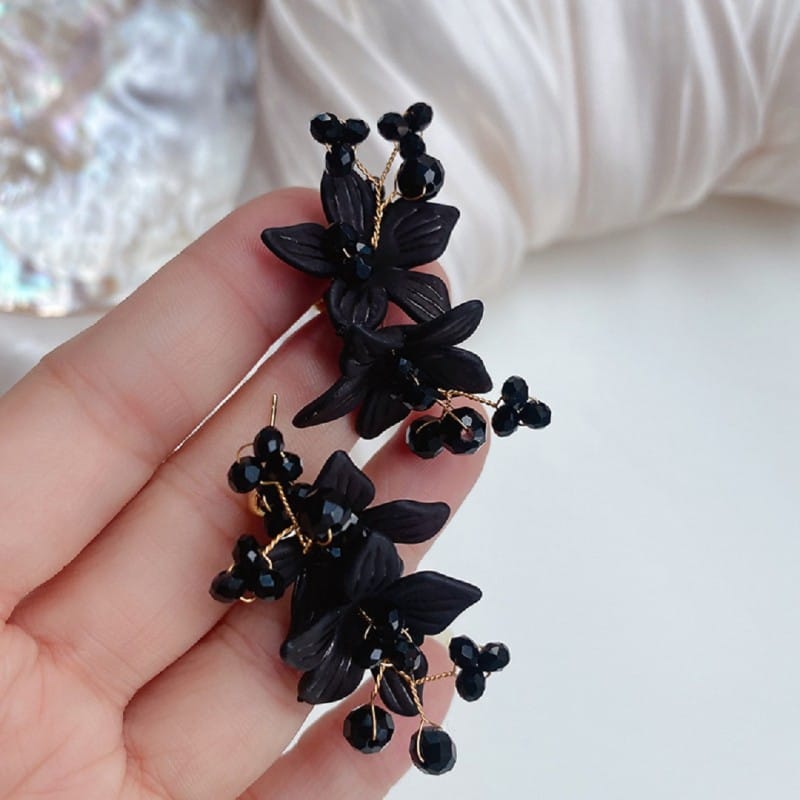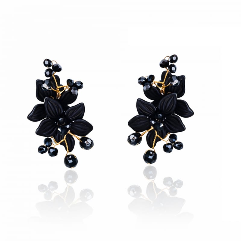 Kolczyki wiszące, efektowne czarne kwiaty, kryształki K1733