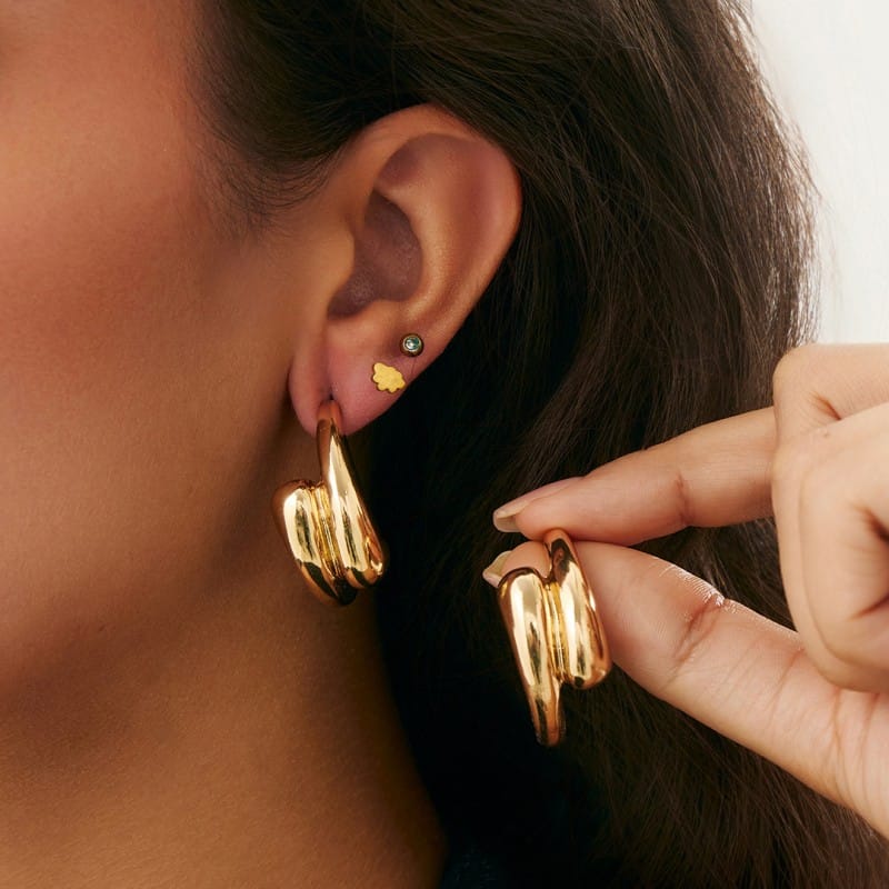 Kolczyki wiszące, efektowne metalowe krople złote K1720