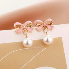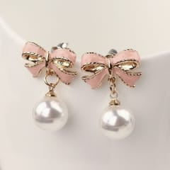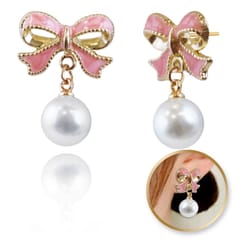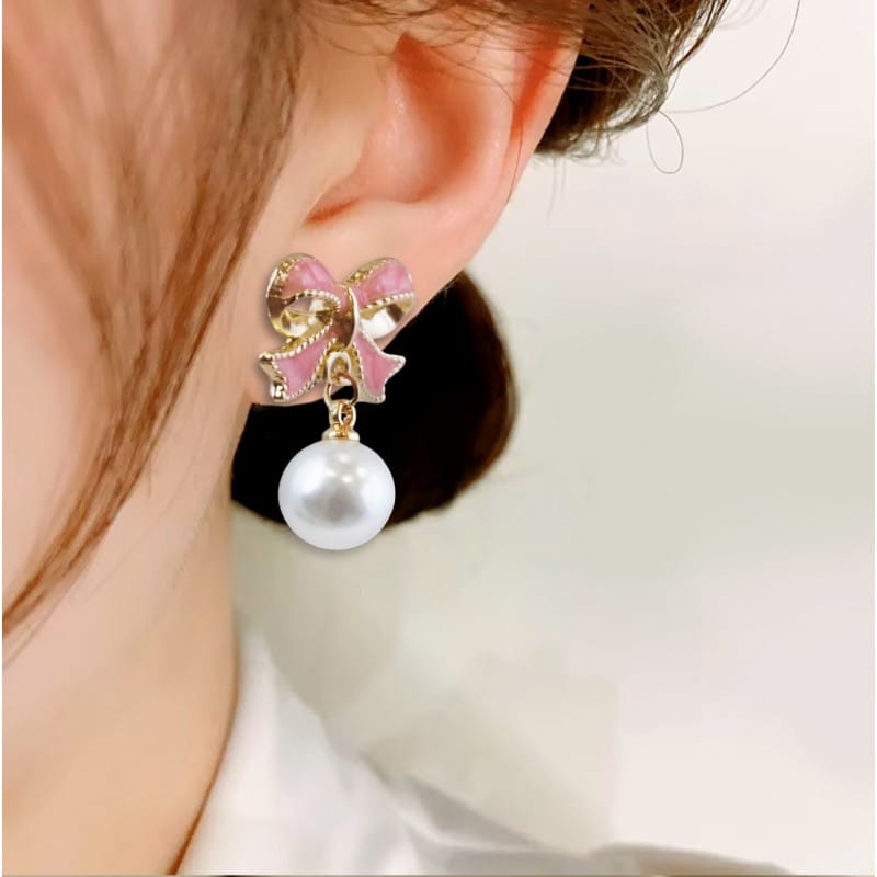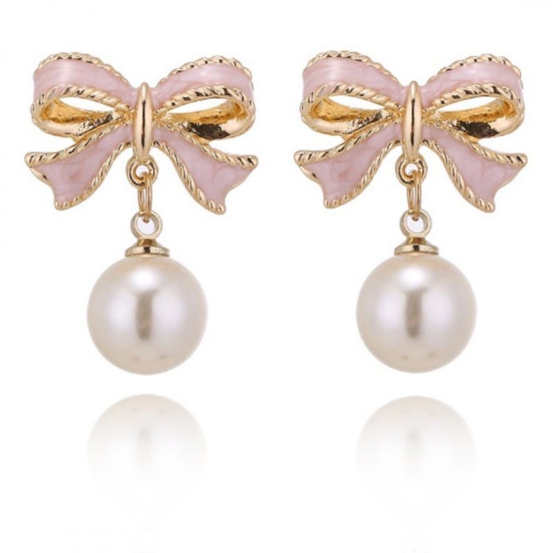 Kolczyki wiszące, efektowne perłowe Kule z kokardkami, K1691