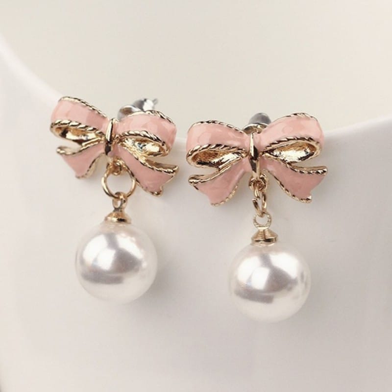 Kolczyki sztuczne perłowe kule z kokardkamiBędą stanowić piękne uzupełnienie eleganckiej kreacji jak i codziennego stroju. Zapięcie:sztyftWymiary:1,9cm x 2,2cmWymiary kartonika:10cm x 8cmWaga:5g netto/ 10g brutto Biżuteria antyalergiczna, nie zawiera niklu ani chromu.Nie moczyć! Unikać kontaktu z wodą! A wtedy posłuży bardzo długo!