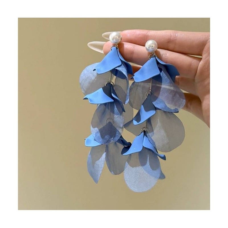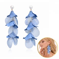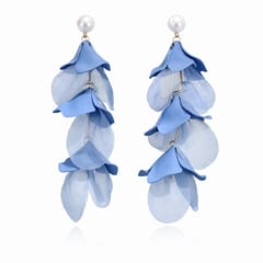 Kolczyki wiszące, efektowne tiulowe niebieskie z perełkami, sztyft K1725