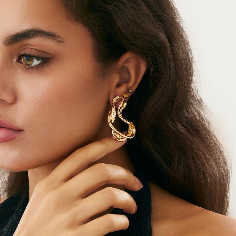 Kolczyki wiszące, efektowne zawijasy złote K1719
