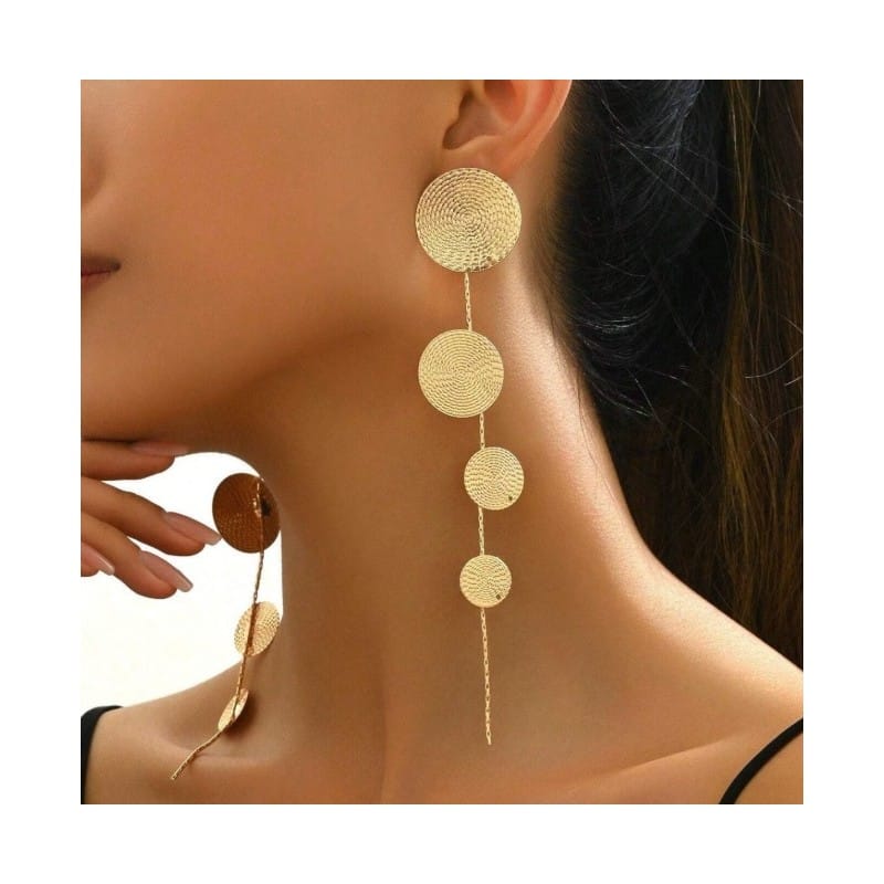 Kolczyki wiszące, efektowne złote kółka, blaszki, sztyft długość 15 cm K1713