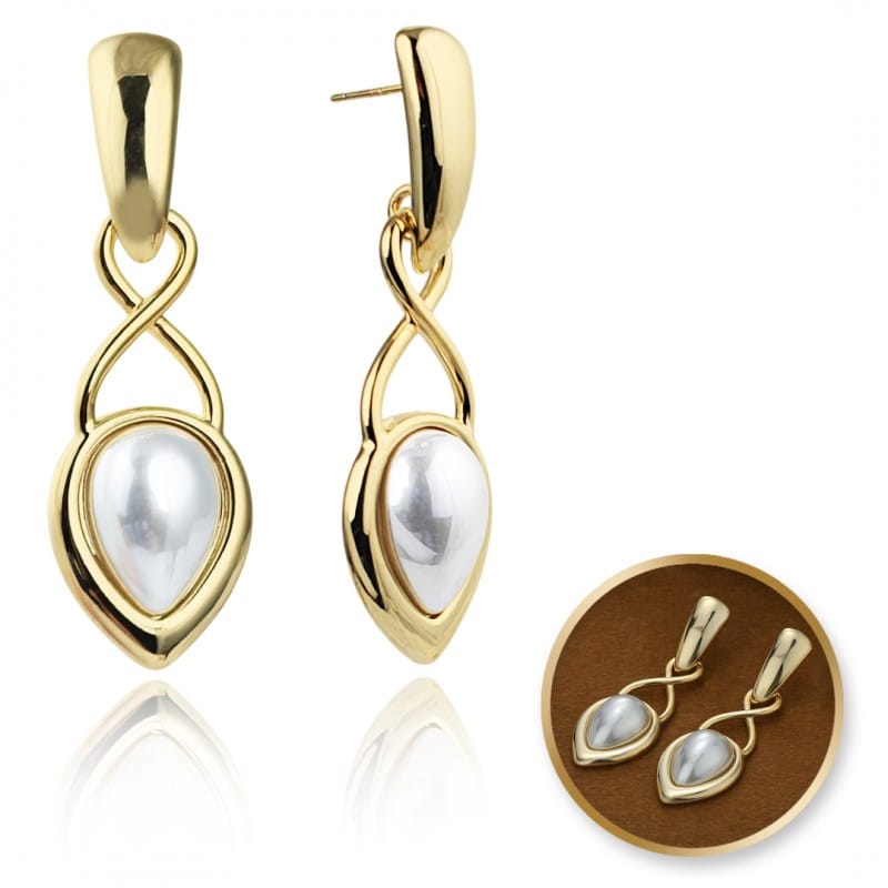 Kolczyki wiszące ze stali szlachetnej platerowane 14k złotem, sztyft srebro S925, perły KST3340