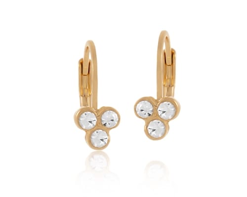 Delikatne kolczyki z trzema kryształkami Preciosa. Długość kolczyka wynosi 1,5cm. Kolczyki pozłacane.